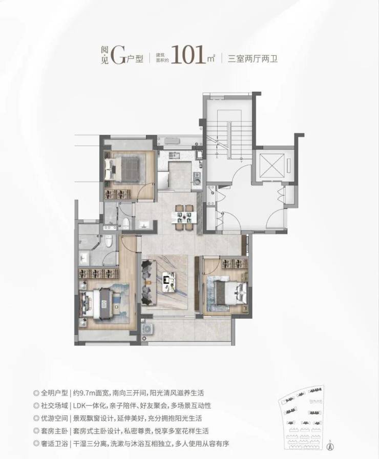 市面上90㎡左右户型两房居多,华发海上都荟建面约91㎡直接3房一步到位,并且有2卫配置,主卧进阶套房,功能性远超同价位竞品!